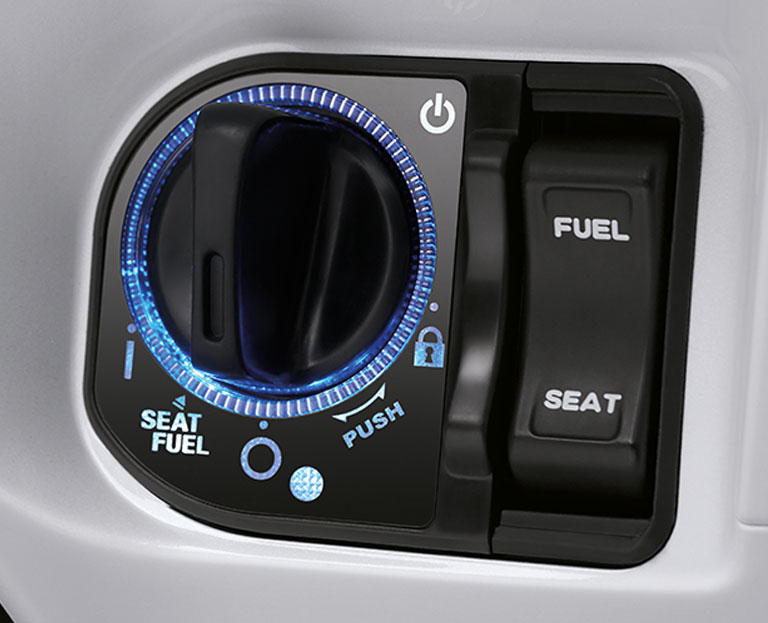 Menyalakan motor tak perlu pakai kunci kontak,tinggal On pada remote lalu puter secara otomaris panel instrumet akan hidup/nyala dan mesin motor siap distarter.