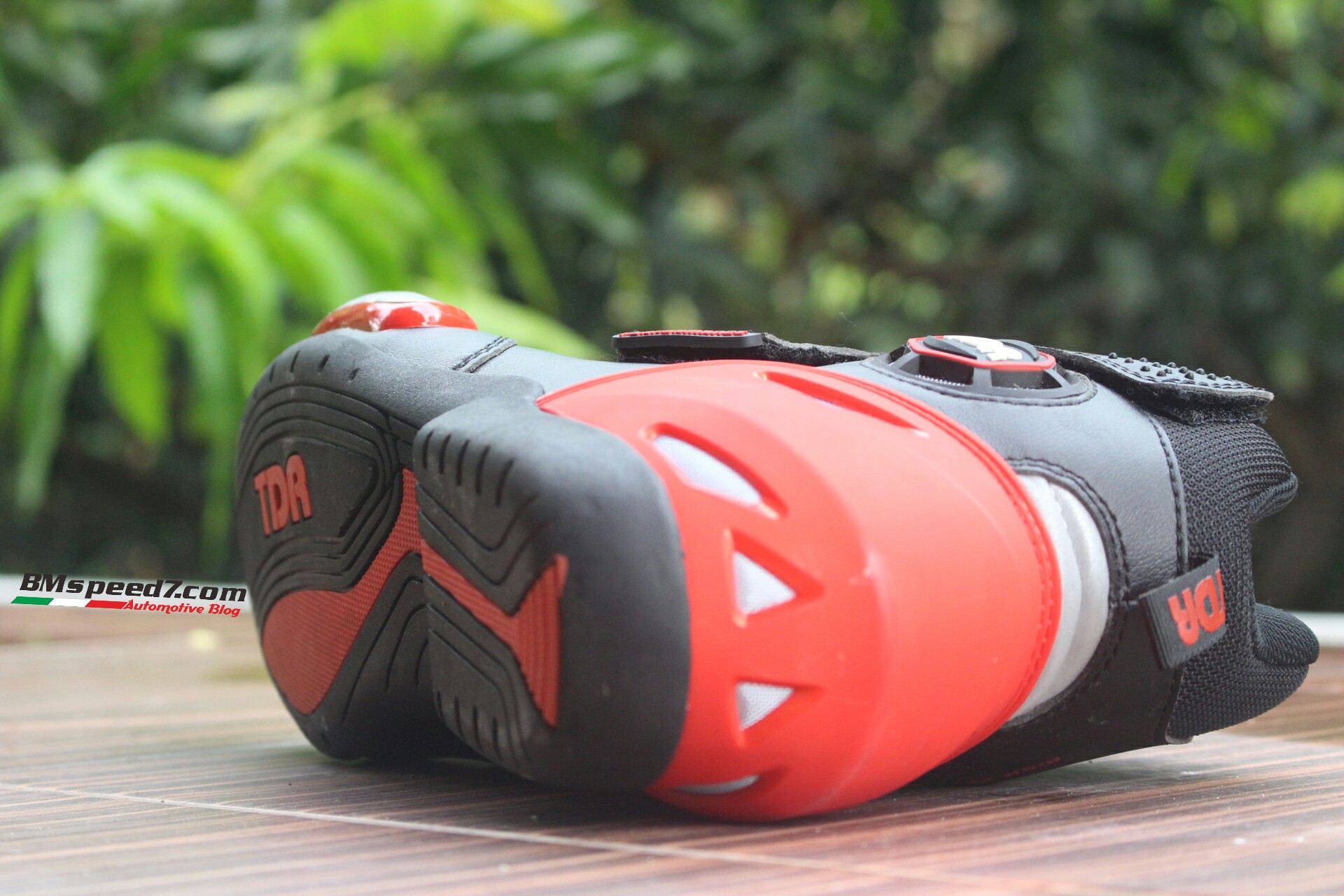 Yups,fitur protector yang ada pada sepatu berkendara ini menjadi kelebihan tersendiri bagi penggunannya. Yang saya amati,ada 3 protector yang disematkan desainer TDR kepada sepatu touring ini bro yakni di mata kaki,depan bagian samping dan di punggung kaki.