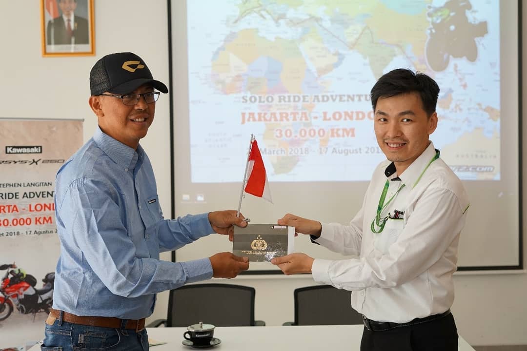 “Kami mendukung Solo Ride Stephen Langitan dengan memberikan 1 buah motor Versys-X 250 kepada Beliau, dan Kami harap Stephen dapat menikmati perjalanan dengan Versys, dan bisa selamat sampai tujuan kemudian kembali ke Indonesia dengan berbagai cerita dan pengalaman menyenangkan dan menegangkan. Kami juga menunggu cerita tentang bagaimana perjuangan untuk mengibarkan bendera merah putih di banyak Negara.” Ucap Michael C. Tanadhi, selaku Deputy Head Sales & Promotio PT. KMI. via wesbite Kawasaki Indonesia.