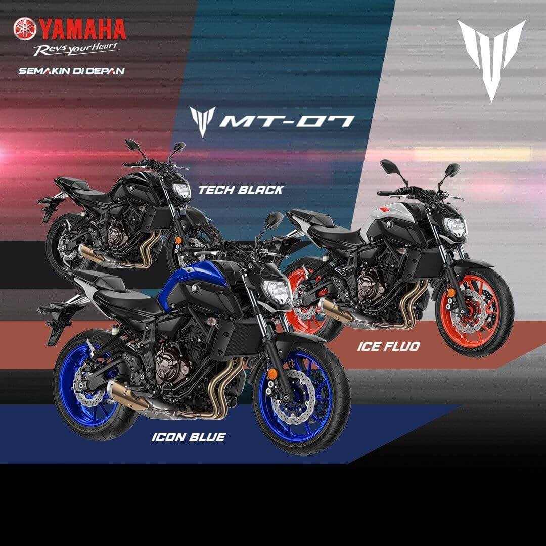 Harga Yamaha MT07 di Indonesia berada di angka Rp 243.000.000 on the road (OTR) Jakarta, sedangkan harga Yamaha MT09 adalah Rp 290.000.000 OTR Jakarta. Keduanya unit tersebut merupakan versi 2020 dan sama sama made in Japan dan mendapat 3 pilihan warna yakni Ice Fluo, Icon Blue, dan Tech Black.